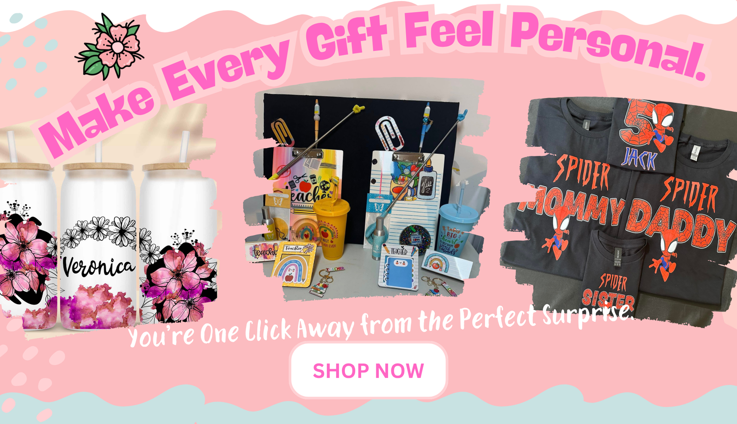 Looking for the perfect gift? Explore our handpicked collection of custom creations and personalized items designed to make anyone feel truly seen and celebrated. From sentimental keepsakes to fun surprises—they're all here, waiting to make someone's day.